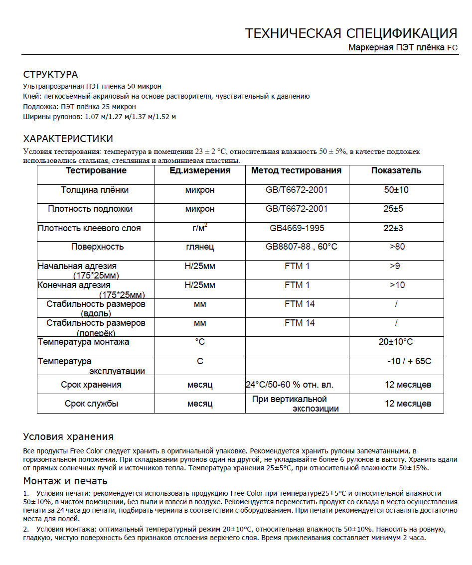 Пленка ПЭТ маркерная FC (0.05мм*1.27*50м), прозрачная